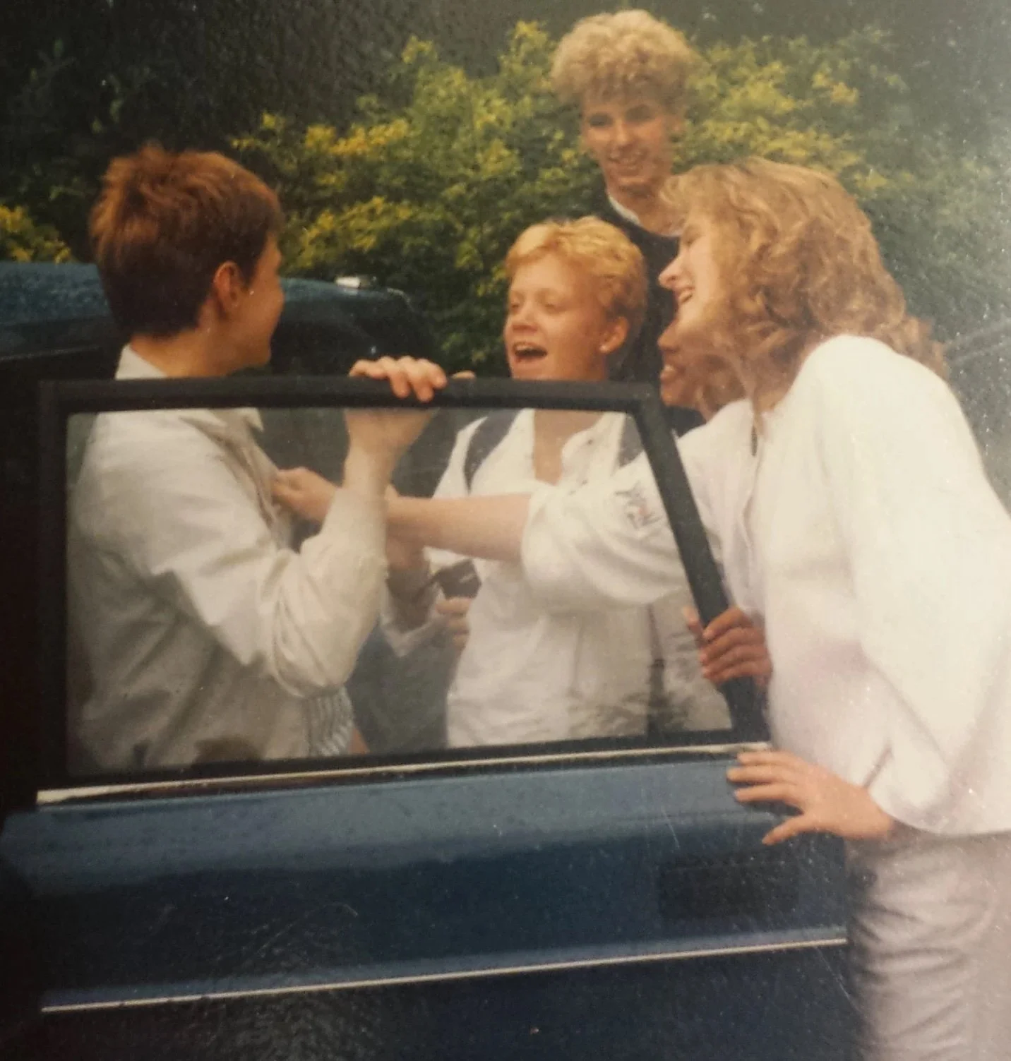Min mor och hennes arbetskamrat Ulla klädda för arbete